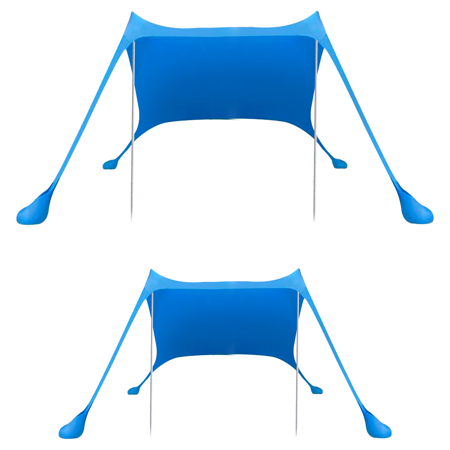 6.5x6.5FT Foldable Beach Canopy Tent Collapsible Shade Sail Sun Protection Windproof Shelter 4 Sandbag 2 Pole Portable Storage Bag Rectangle Blue