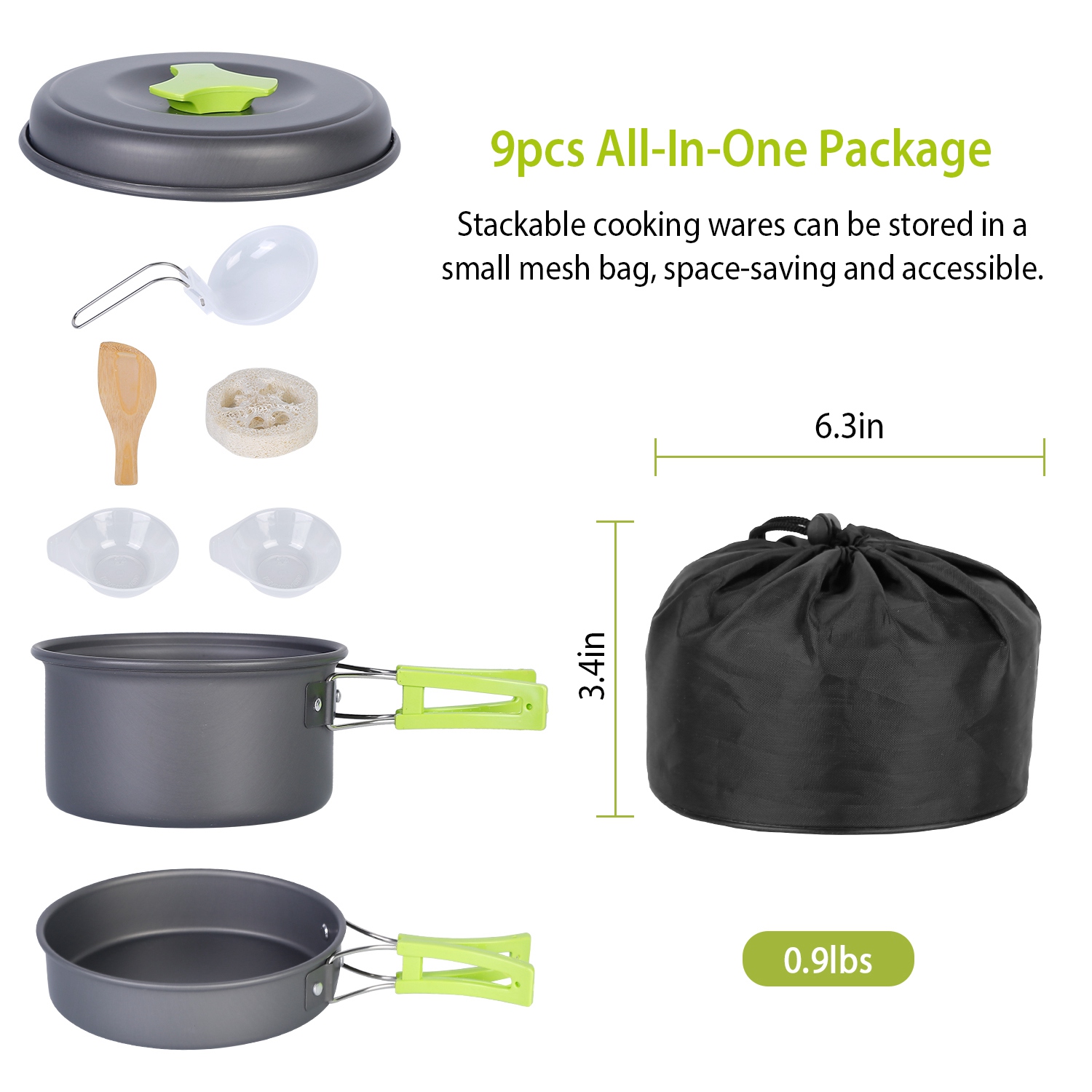 Home > 9Pcs Camping Cooking Ware Set Camping Stove Cookware Kit Aluminum Pot Pans Set for Hiking Picnic Outdoor