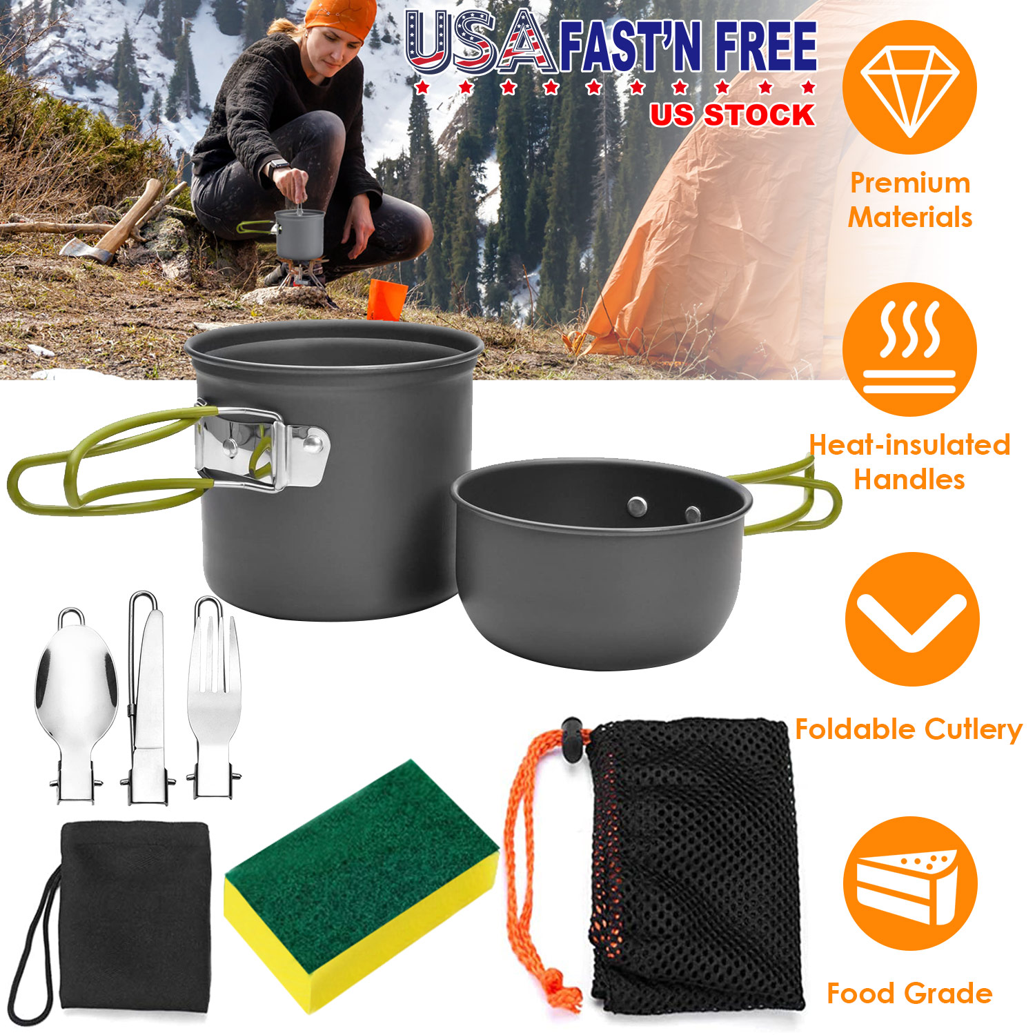 Home > 8Pcs Camping Cooking Ware Set Camping Stove Cookware Set Aluminum Pot Foldable Knife Fork Spoon Set for Hiking Picnic Outdoor