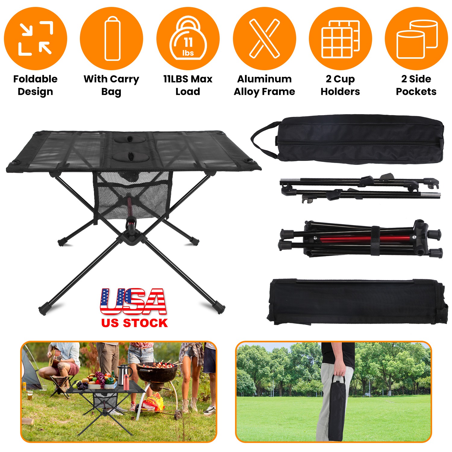 Camping Table Size(Unfolded): 60x40x40cm/23.62x15.75x15.75in