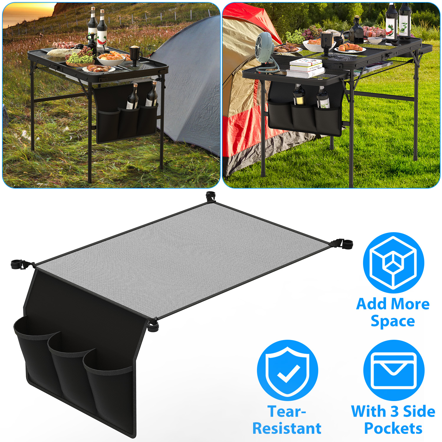 Hanging Storage Net for 35.43x23.62 Camping Table Under Table Folding Net Bag Tear-Resistant with 3 Side Pockets 4 Corner Clips for Camping Hiking Fis